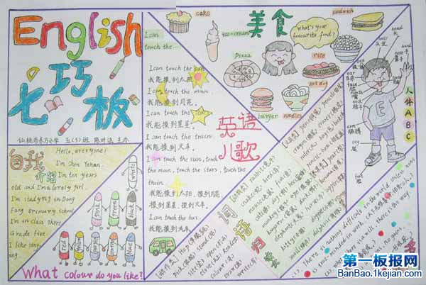 小學生英語手抄報:七巧板/英語兒歌/美食